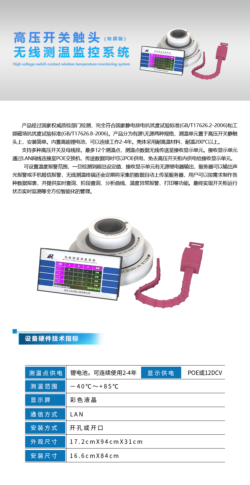 高压开关触头无线测温监控系统(有源版)